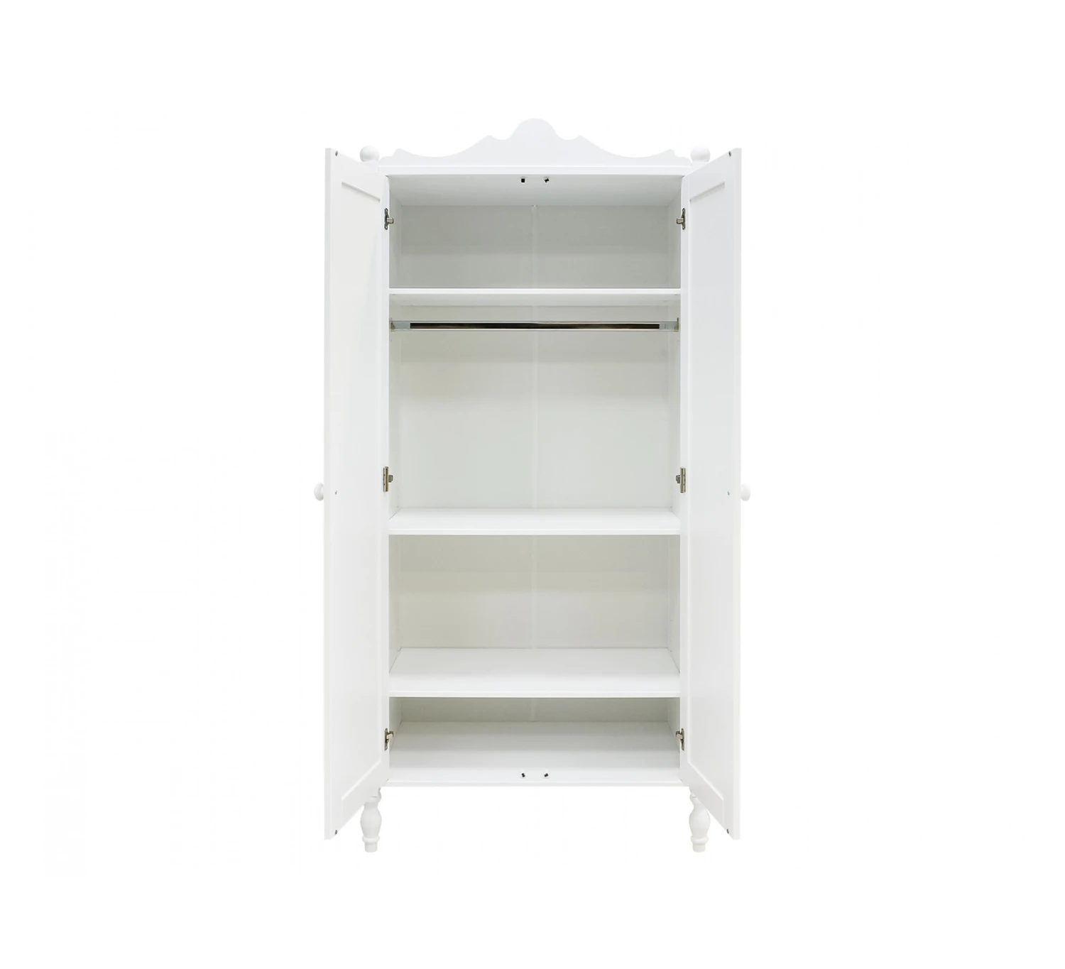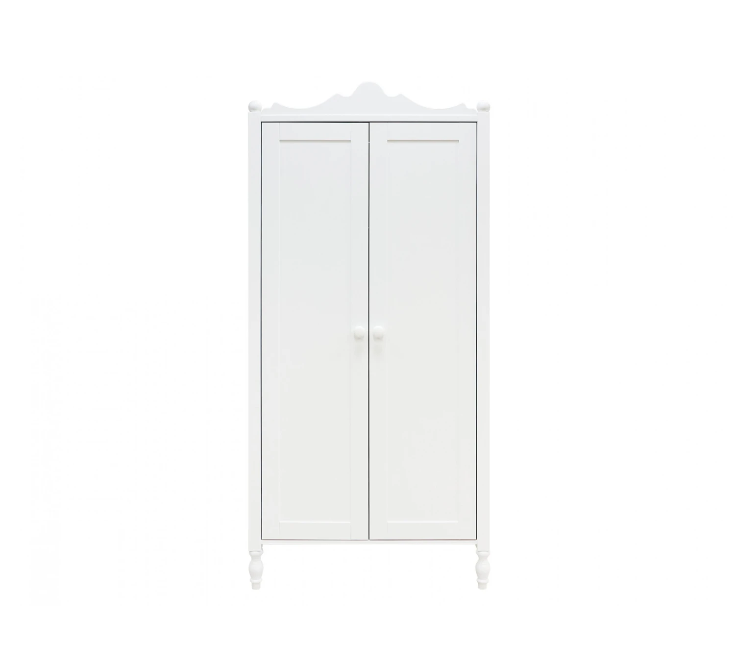 De serie Belle van Bopita bestaat uit romantische meubeltjes voor baby, junior en tiener. De meubeltjes hebben door de mooie koof en de bolling aan de poten een luxe uitstraling. Naast de2-deurs kast kun je kiezen uit een ladenkast met vijf laden en een 3-deurs kast.