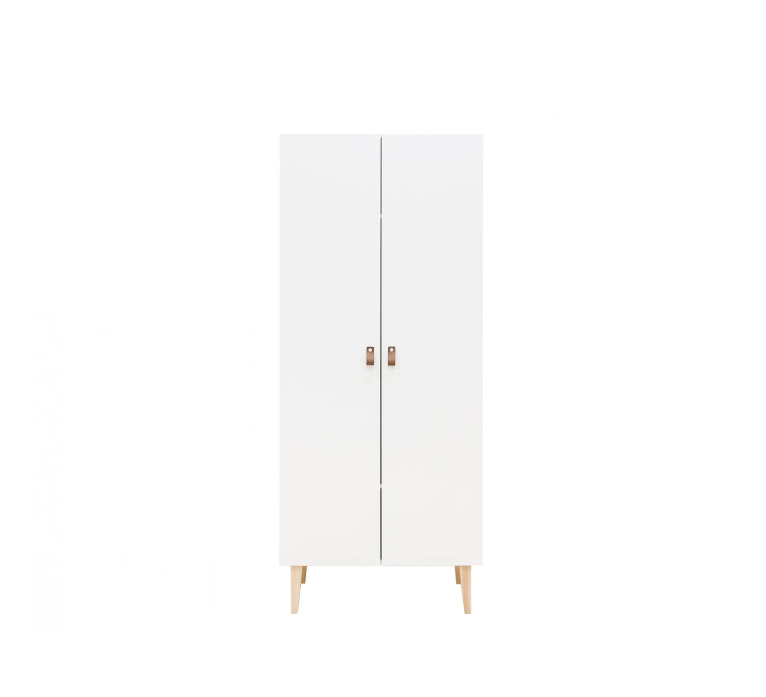 De 2-deurskast Indy van Bopita is voorzien van lederen handgrepen. De ranke pootjes zijn uitgevoerd in beukenhout. De kast is afgewerkt met een lak op waterbasis en is daarmee milieu- en kindvriendelijk. Het interieur bestaat uit twee legplanken en een hangroede.