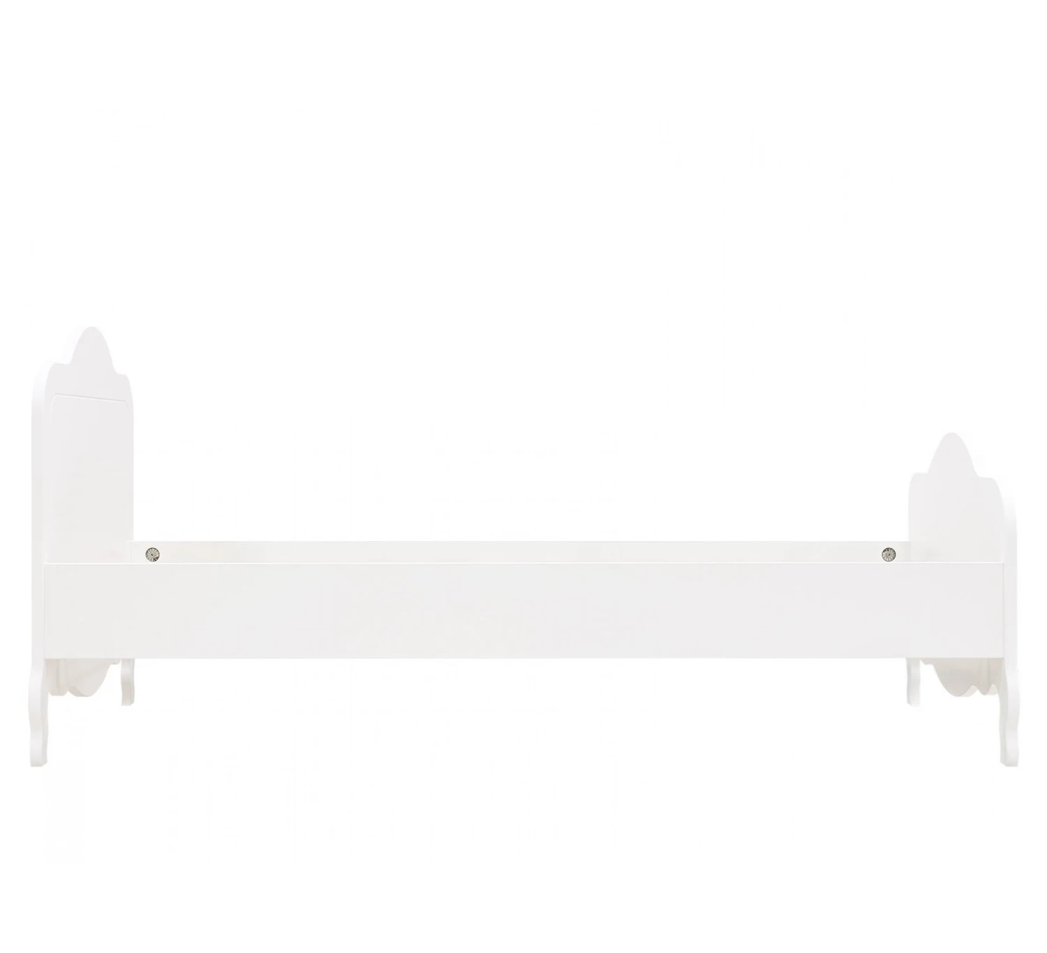 Het bed 90×200 Elena uit de collectie van Bopita is een stijlvol bed met een klassieke uitstraling. Dit komt door de kenmerkende golven aan het hoofd- en voeteneinde en de sierlijke pootjes. Het bed is afgewerkt met witte lak op waterbasis en de golvende kam is voorzien van subtiele groeven. Het bed wordt geleverd inclusief lattenbodem.