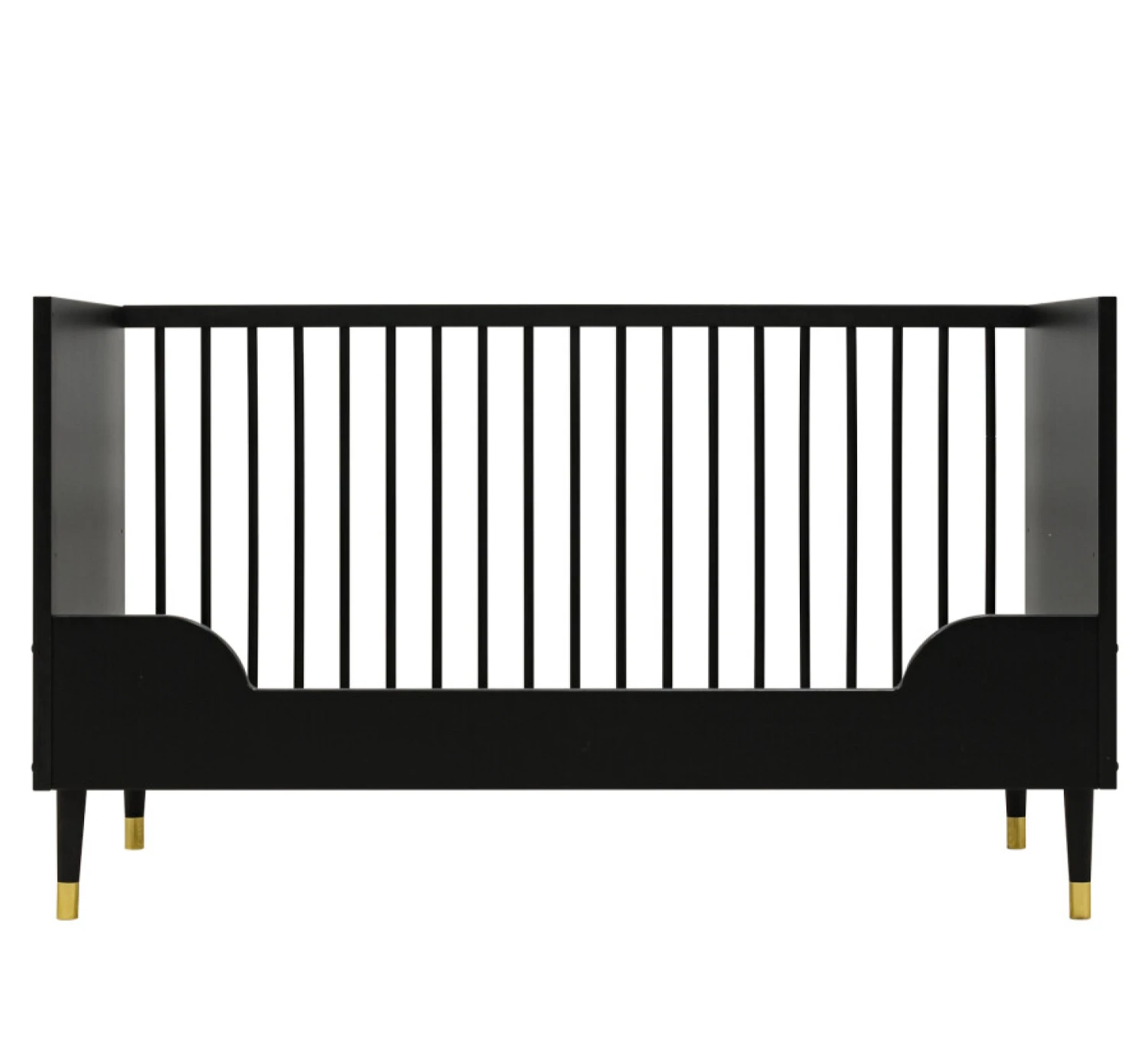 Het doorgroeibedje Cloë van Bopita ziet er niet alleen goed uit, maar is ook nog erg duurzaam. Op het moment dat je kindje de ledikant ontgroeid is, bouw je hem eenvoudig om tot een peuterbedje waar je kleintje zelf in en uit kan stappen. Het bedje heeft een verstelbare bodem, zodat je deze kunt verlagen op het moment dat het kindje zich begint op te trekken. Het bedje is afgewerkt in een combinatie van mat zwart met gouden accenten. Combineer het bedje met de andere meubelen uit de Cloë collectie van Bopita. Let op; het bedje is niet om te bouwen naar een cot bed variant. Er is altijd één spijlenzijde aanwezig.