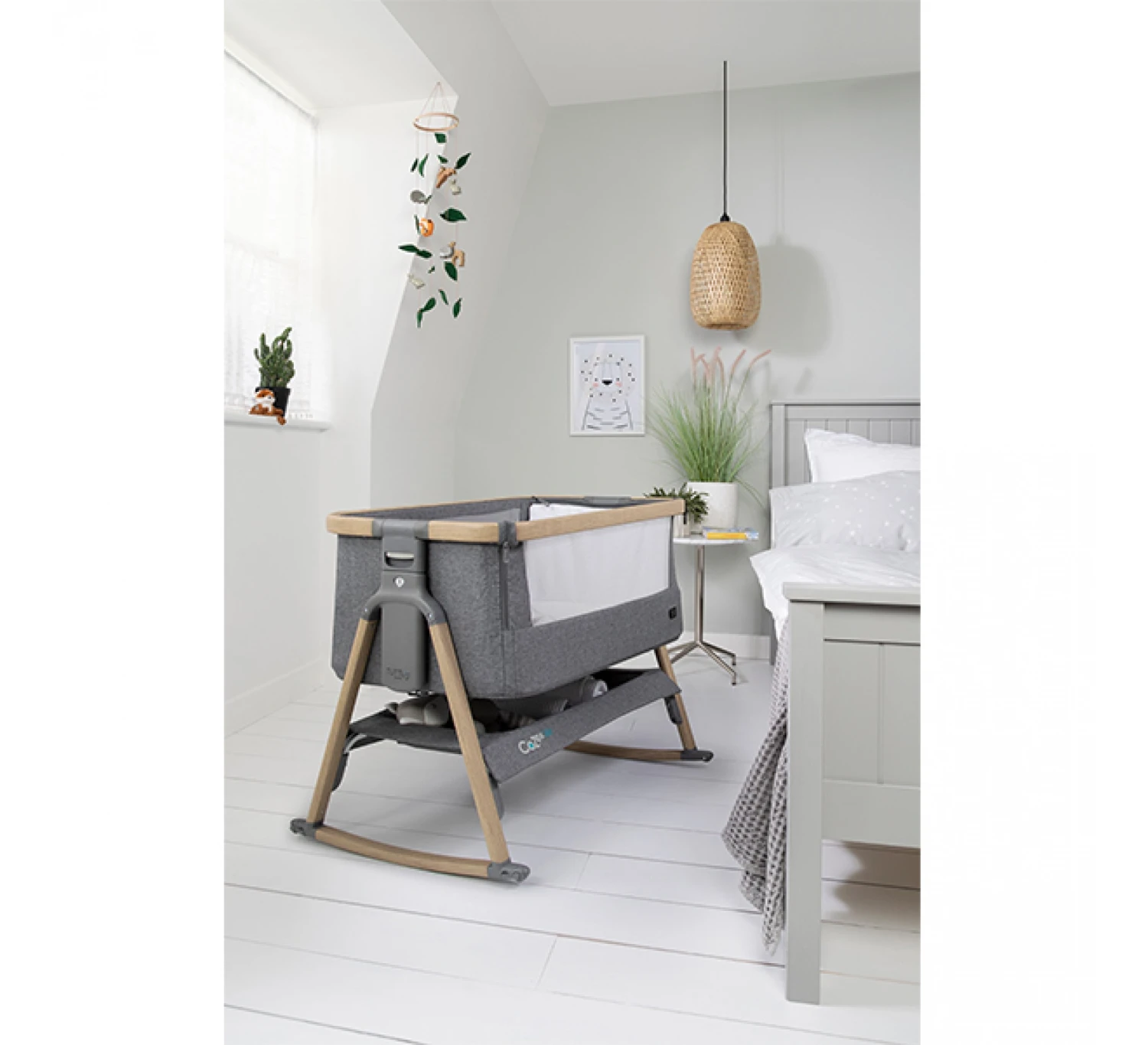 Tover je Tutti Bambini CoZee bedside crib om tot een schommelwiegje met deze handige schommelstangen. De schommelstangen zijn eenvoudig te bevestigen onder het Tutti Bambini CoZee bedje en ook weer gemakkelijk eraf te halen.