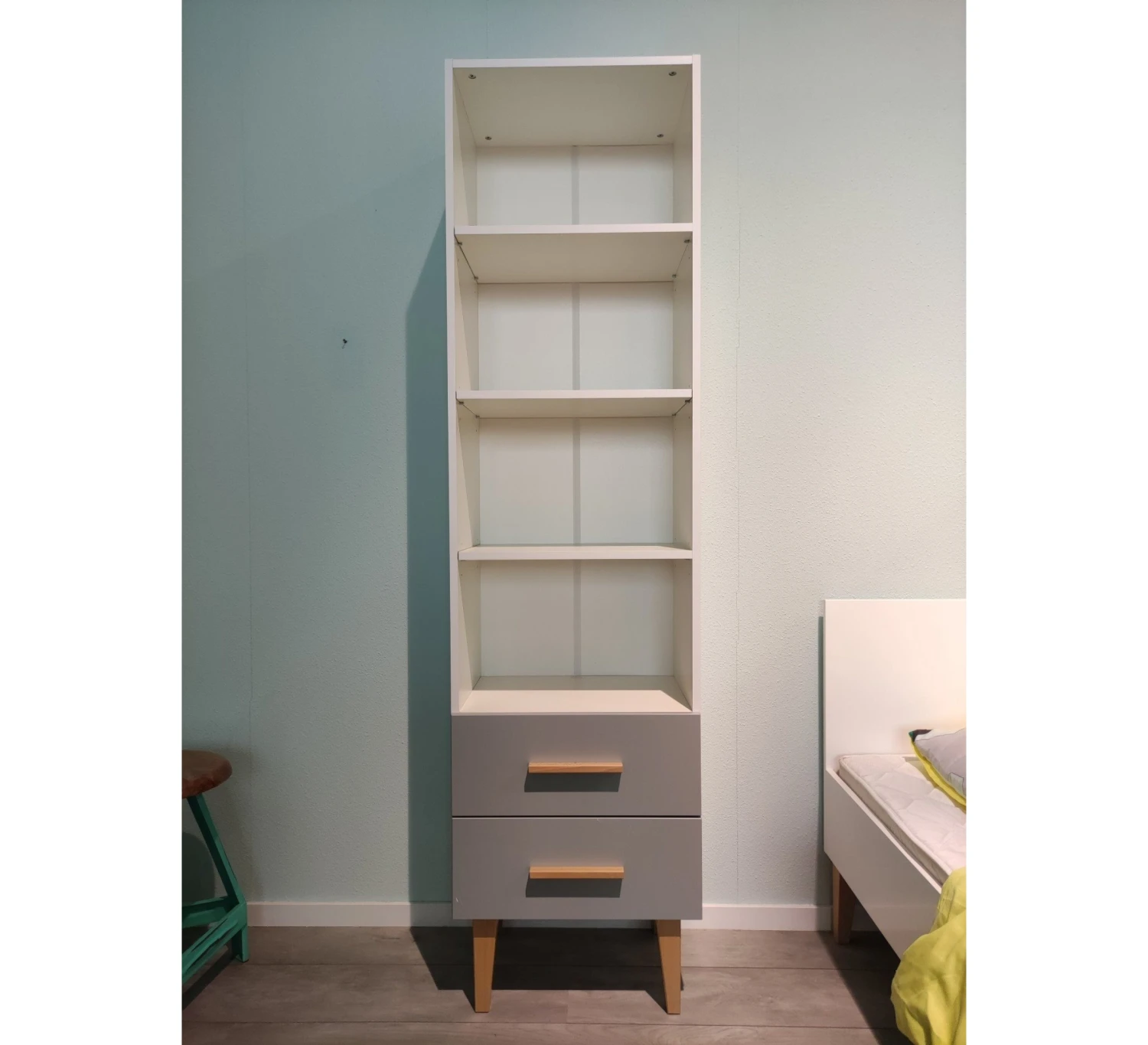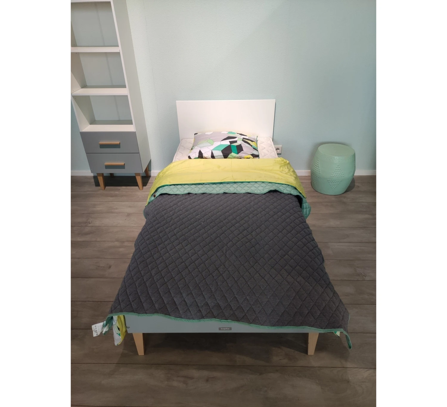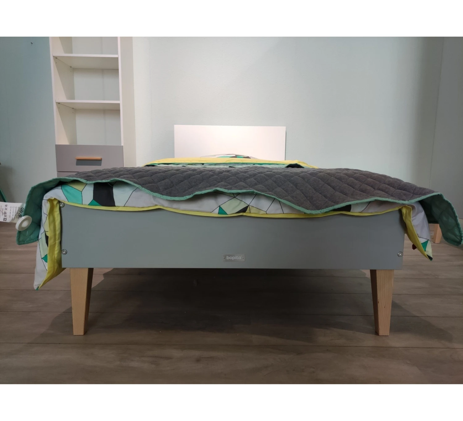 Deze stijlvolle Bopita kinderkamer bestaat uit een bed 90 x 200 cm (incl. lattenbodem), boekenkast en 2-deurskast. Bezoek onze showroom om deze kinderkamer te bekijken. Nieuw 988,-, nu 699,-.