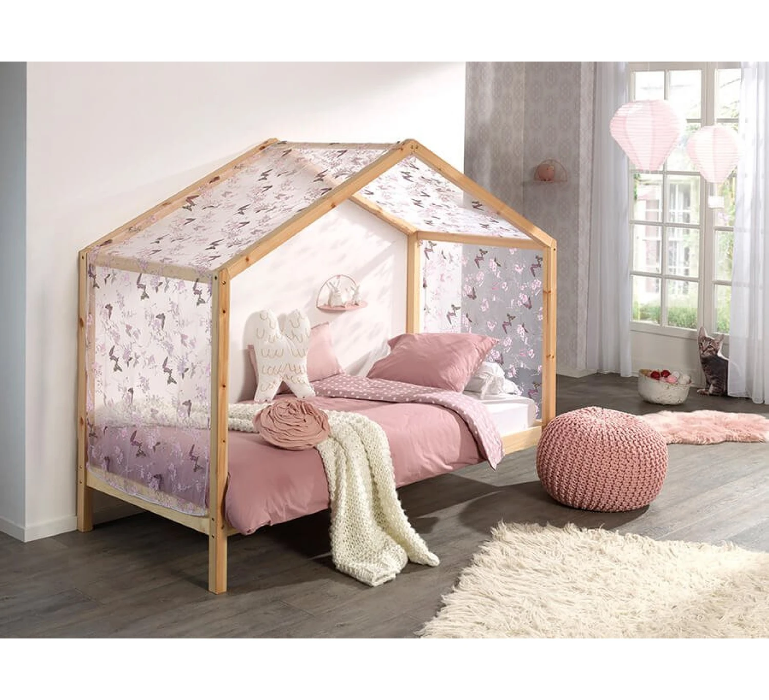 Versier je Vipack Dallas bed met die mooie vlinder gordijn. Je kindje zal heerlijk wegdromen onder deze vlinderregen. Het gordijntje is speciaal gemaakt voor het Dallas bed van Vipack.
