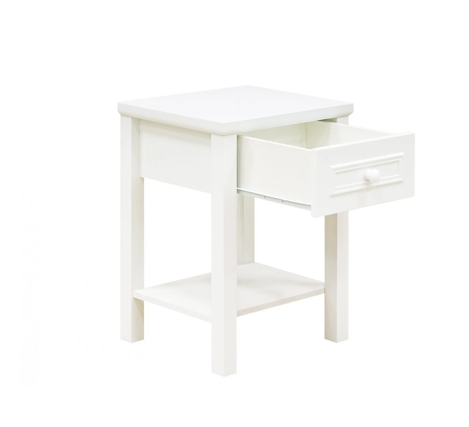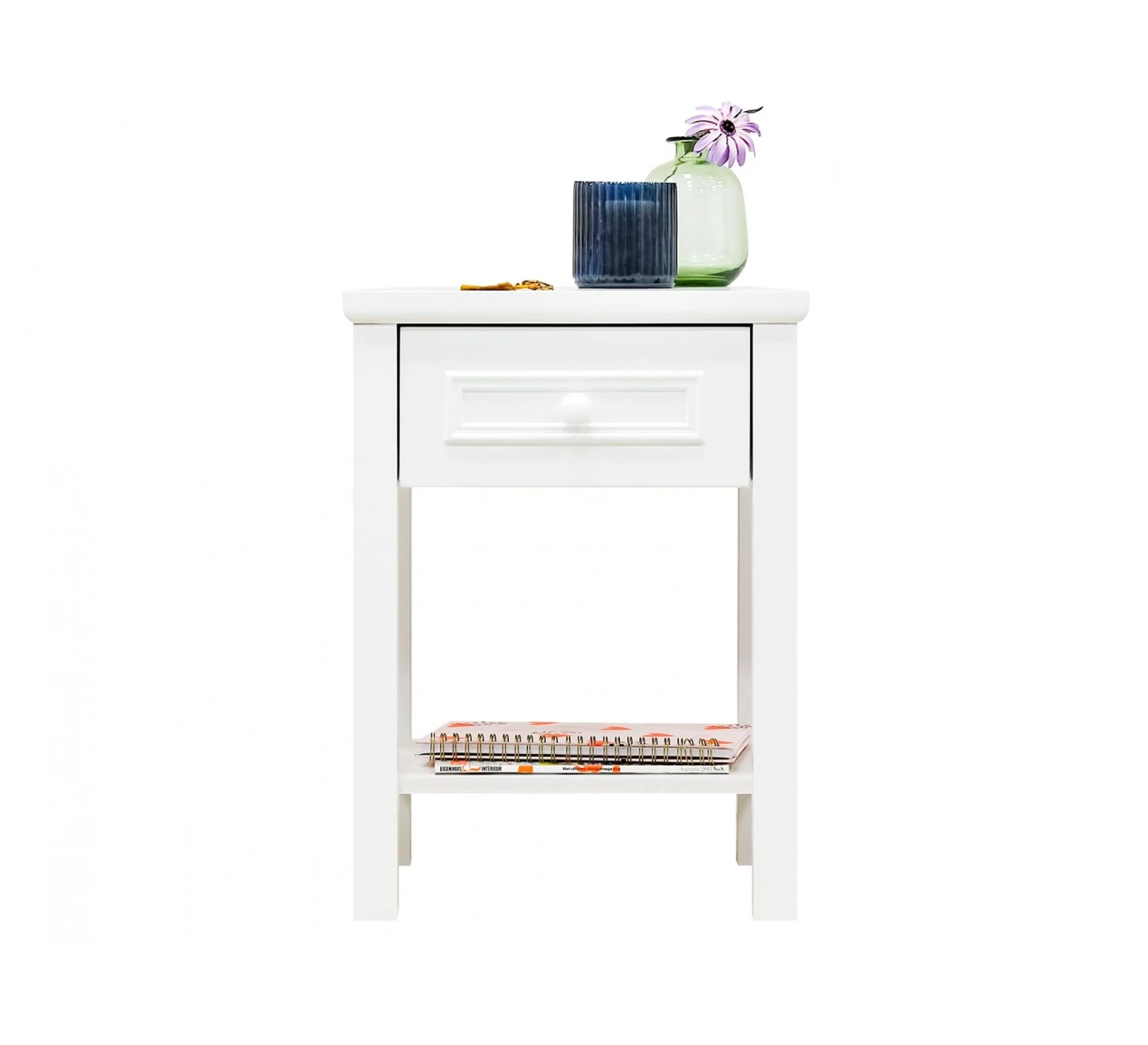 Het nachtkastje Charlotte heeft een klassieke en elegante uitstraling. De lade is voorzien van sierlijsten en een ronde knop. Bovendien biedt het nachtkasttje voldoende opbergmogelijkheden. Op de legplank kan je nog wat extra spulletjes leggen.
