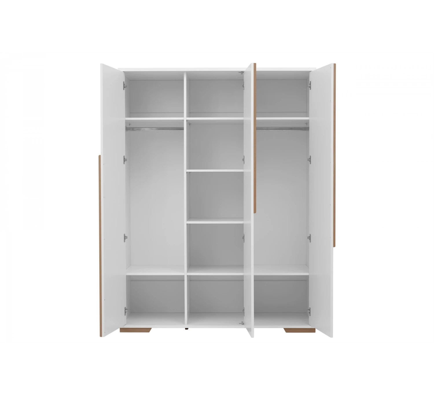 Deze ruime 3-deurskast van Pinio is gemaakt van MDF en beukenhout en maakt onderdeel uit van de Snap collectie. De kast heeft ruimte voor vier planken aan de ene kant en twee planken en een kledingrails achter de twee andere deuren. acht planken en twee rails worden meegeleverd met de kast. Er zijn verschillende mogelijkheden voor het indelen van de kast. De kastdeuren zijn voorzien van een zelfsluitend systeem met rem waardoor de kastdeur afgeremd wordt wanneer deze iets te hard dichtgedaan wordt.
