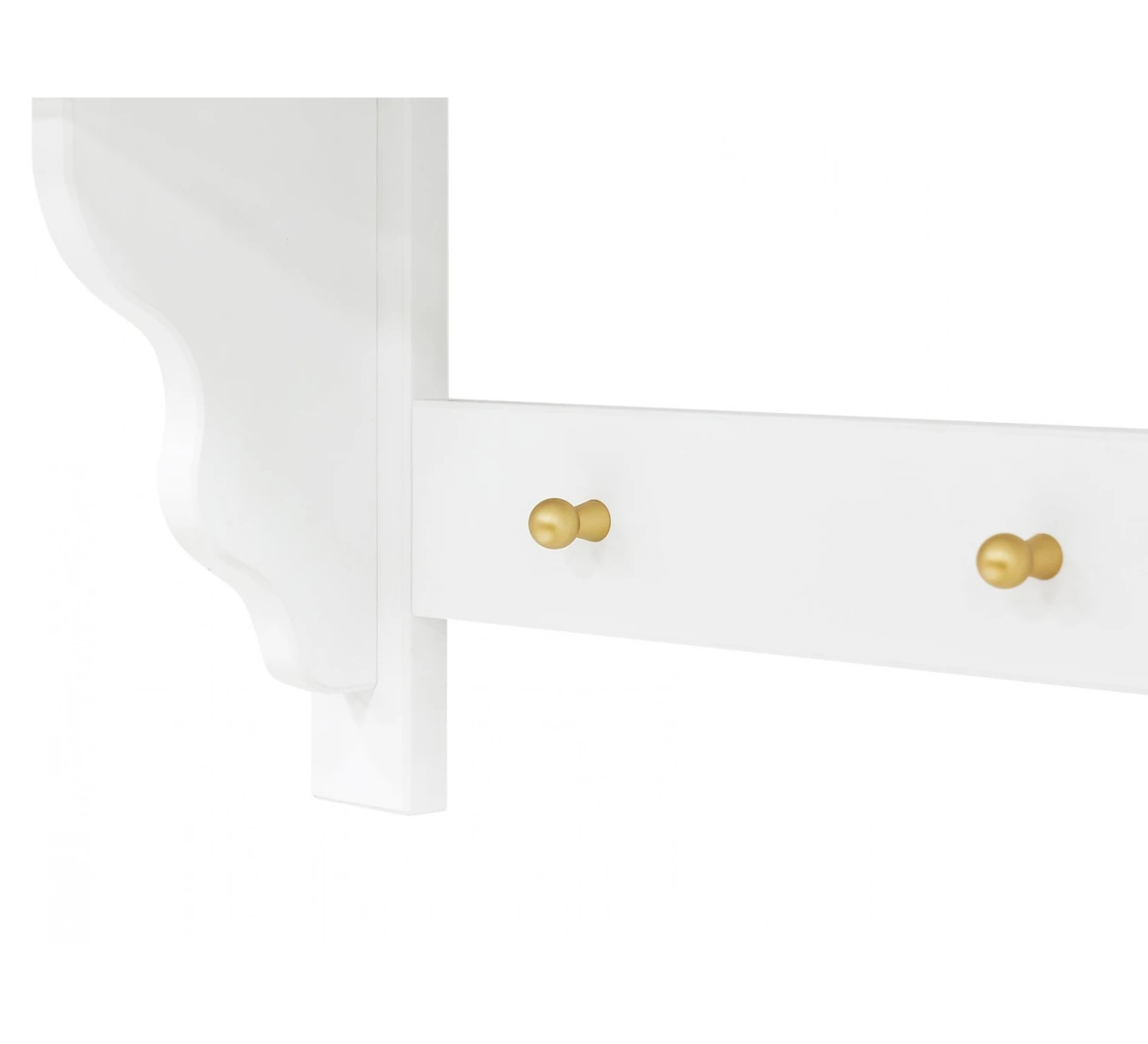 Maak je babykamer helemaal af met dit mooie wandrek Elena van Bopita. Het wandrek is afgewerkt met witte lak op waterbasis en is ideaal voor boven de commode. Je kunt er benodigdheden of accessoires op kwijt, zodat je deze in de buurt hebt tijdens het verschonen van je kindje. Het wandrek is voorzien van vier matte, goudkleurige knoppen. Dit wandrek is eenvoudig aan de muur te bevestigen. Schroeven zijn niet inbegrepen.